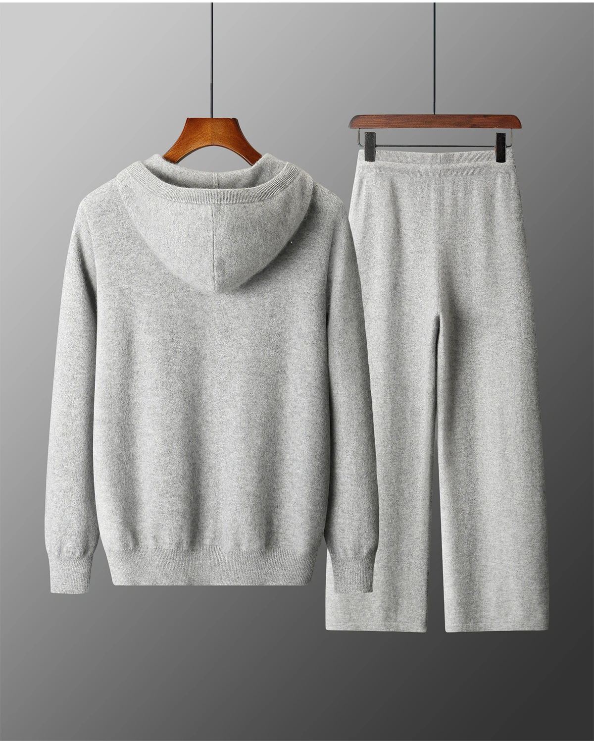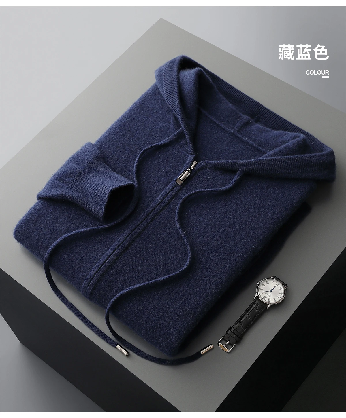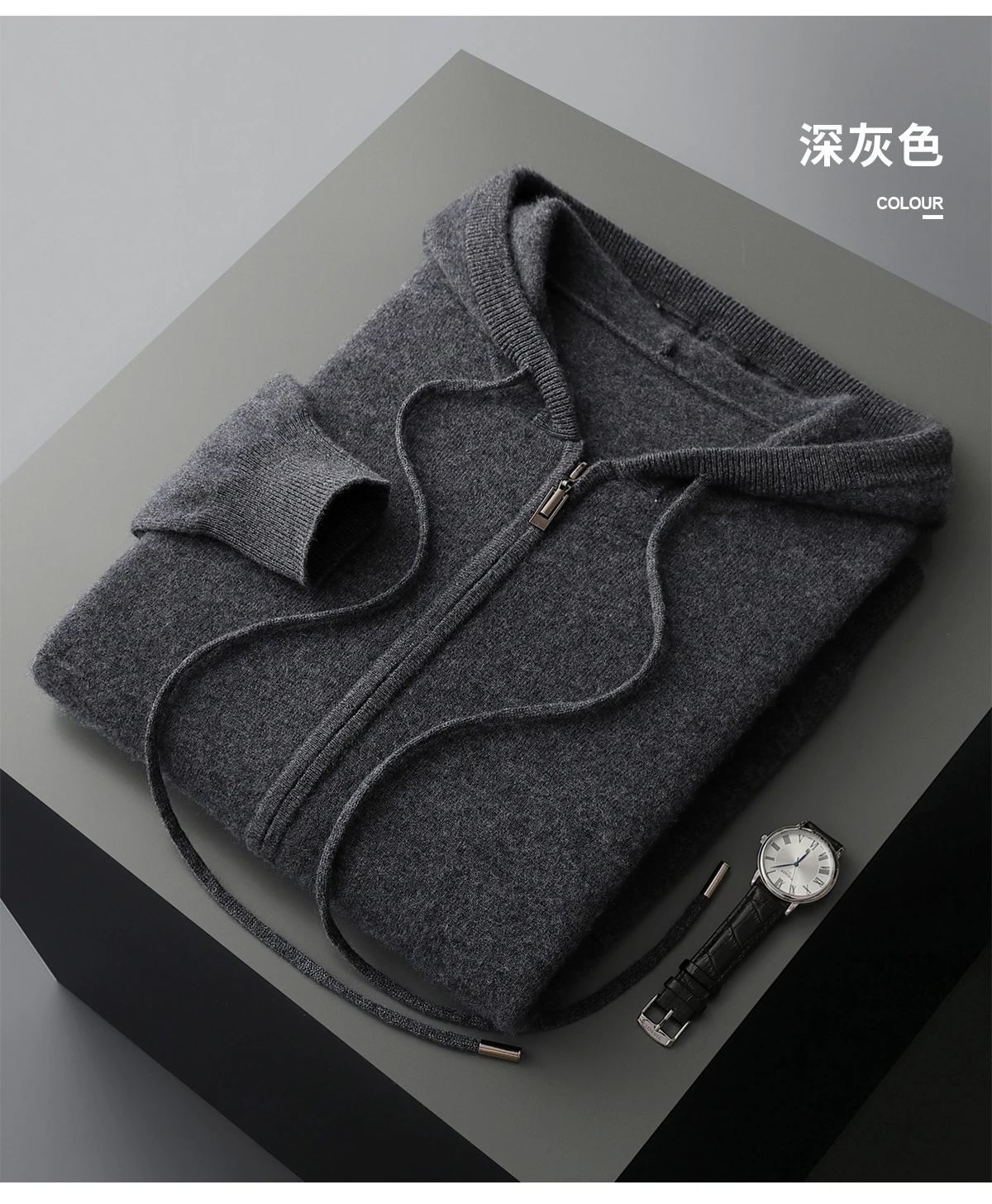 Men's Two-piece Sets 100% Merino Wool Knitting Hooded Collar Cardigan and Wide-leg Pant Autumn Winter Thickened Warm Clothing