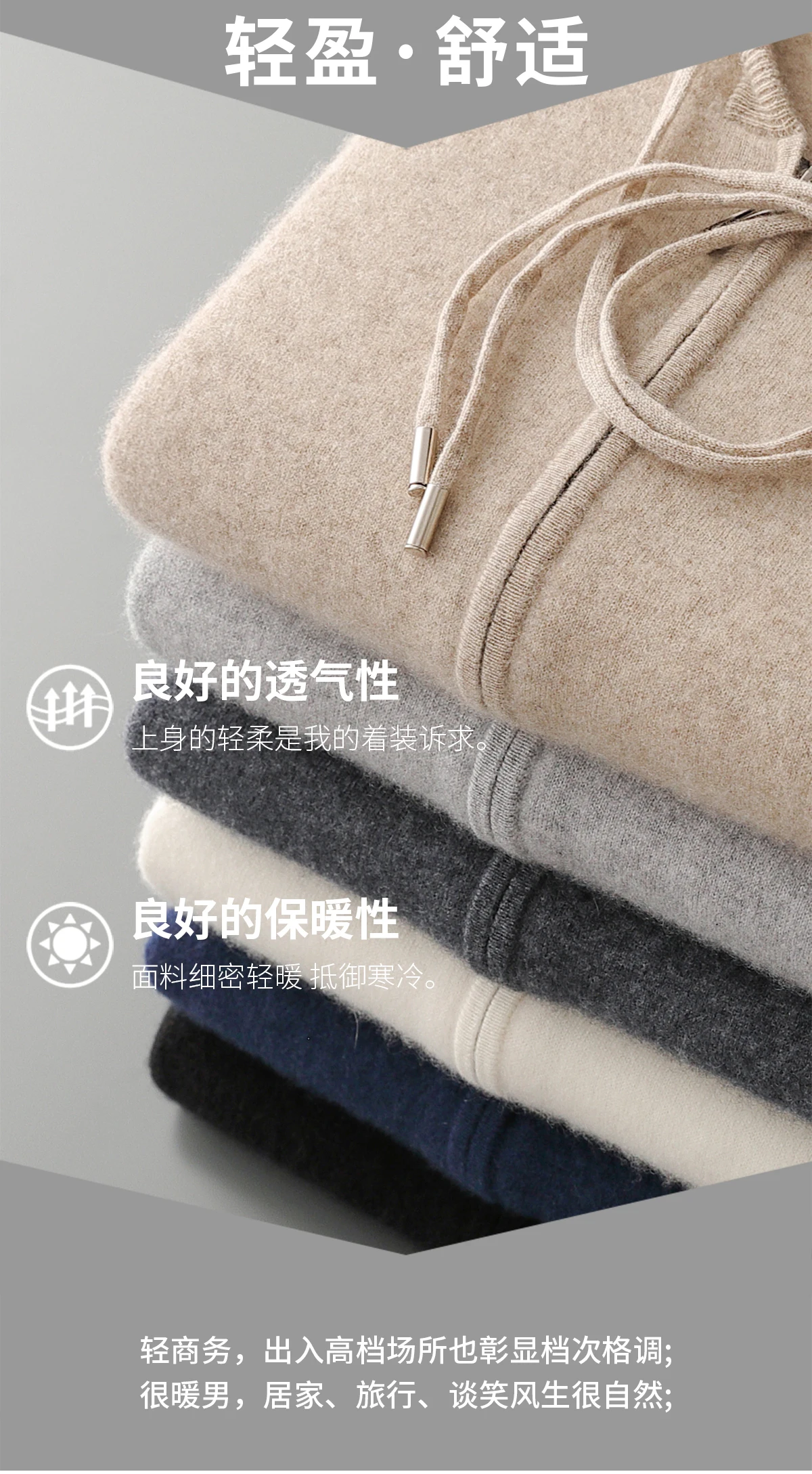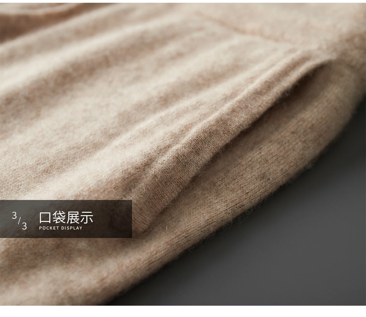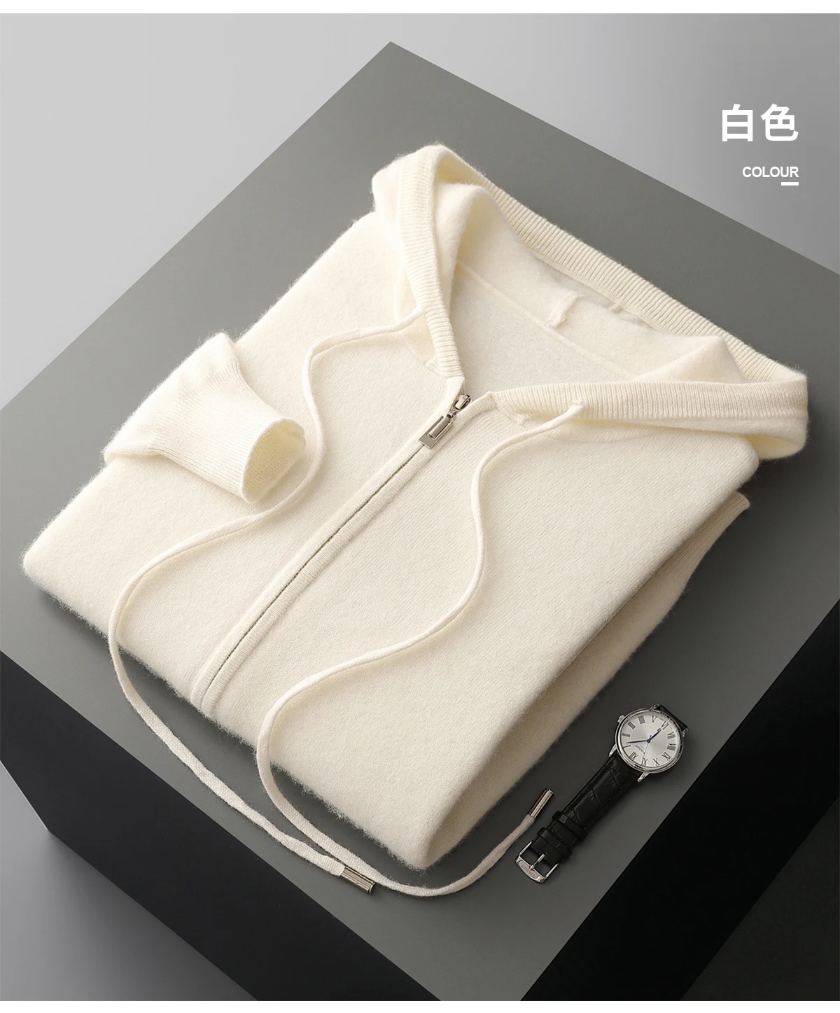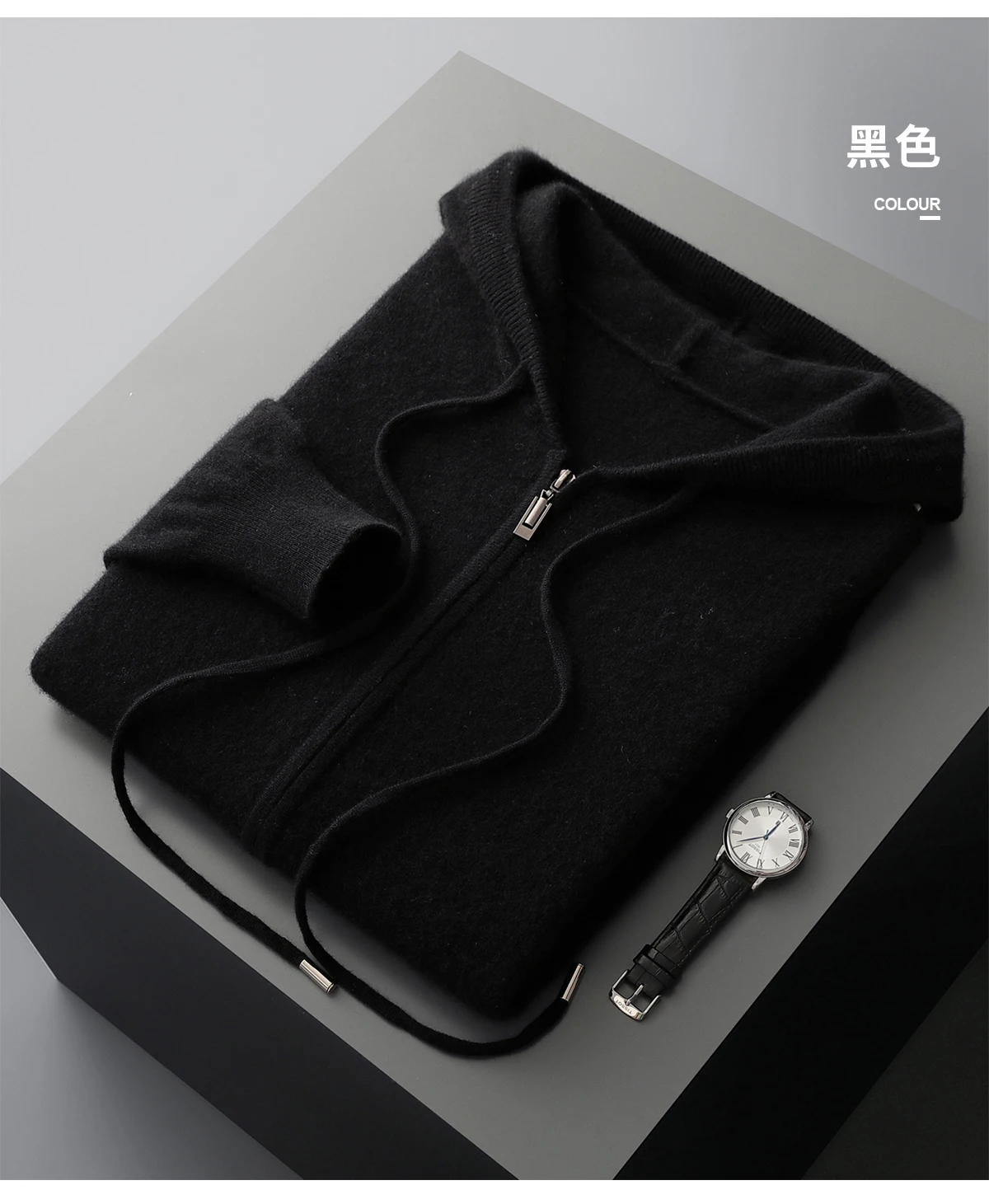 Men's Two-piece Sets 100% Merino Wool Knitting Hooded Collar Cardigan and Wide-leg Pant Autumn Winter Thickened Warm Clothing